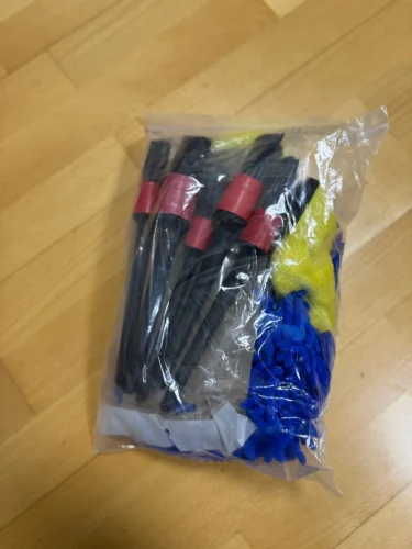 Perfect just like in the photos and with a variety of tools for cleaning. Moreover, they seem to be of good quty except for the yellow microfiber.