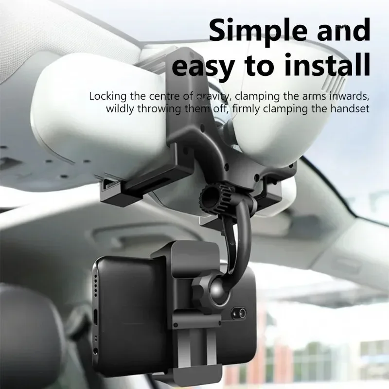 Universal Rotatable Car Phone Stand with Folding Clip Adjustable Rearview Mirror Mounting Stand for Mobile Phones